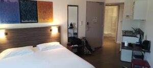 Dann erstmal den schweren Rucksack loswerden und ab zum Bahnhof…. Gepäckabgabe, so wie ich es im Internet gelesen habe, gab es dort aber nicht. Also Alternative gesucht….und mich bei einer Webseite angemeldet für Gepäckaufbewahrung…. kurze Zeit später konnte ich schon in einem naheliegenden Hotel mein Gepäck abgeben…dann wollte ich mir schonmal die Adresse der Unterkunft anschauen und war 10 Minuten später dort… drehte mich um und wollte wieder gehen, als mich ein Mann ansprach….dabei kam heraus, dass es der Vermieter ist, der mir wohl auch gerade eine Mail geschickt hat, ob ich früher einchecken wolle. Eine halbe Stunde früher und ich hätte mir das mit der Gepäckaufbewahrung sparen können. Naja…so war ich eben schon früher drin. Er zeigte mir das 1 Zimmer Appartement und das war’s auch schon….es kommt definitiv nicht an das gestrige heran…aber es ist ausreichend…Ich wurde ja vorab schon drauf hingewiesen, dass Montpellier wohl voller Zikaden oder ähnlichem Getiers ist …und tatsächlich….man hört sie oft dort, wo etwas Grünes wächst….auch aus meinem Appartement…aber lieber das Gezirpe als laute Musik oder Ähnliches…..🙂.