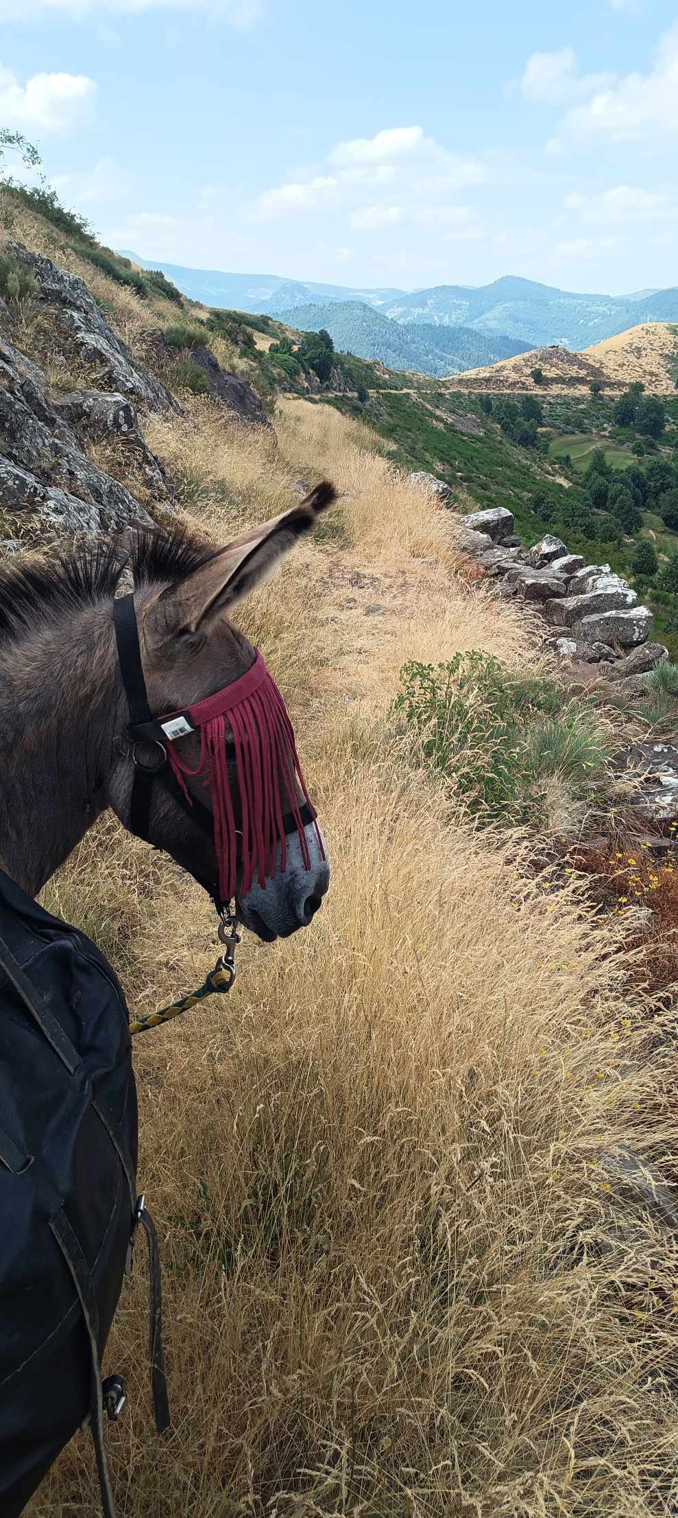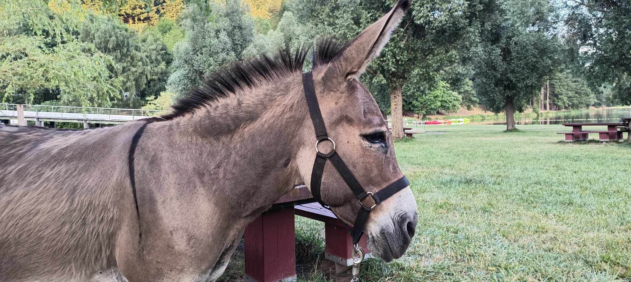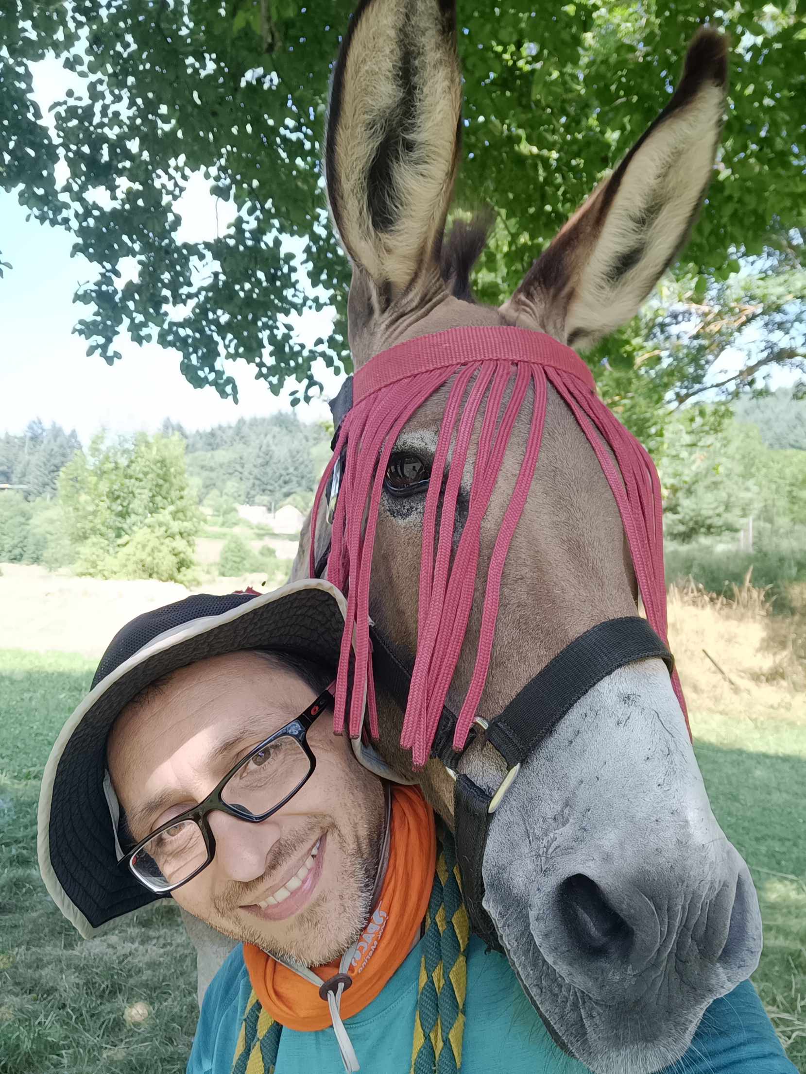 Danach wieder auf der gleichen Strecke wie am Vortag das Navi suchend…. heute ging es teilweise sehr schwierig und teilweise sehr gut voran….ich weiß nicht immer was Nano will, wenn er stehen bleibt und streikt….. einmal habe ich gesehen, dass Decke und Sattel zu weit vorne waren….. manchmal bleibt er auch stehen, wenn wir an eine tolle Aussicht kommen oder er wohl irgendwas sieht …es sieht so aus, als ob er auch von einer schönen Aussicht magnetisiert wird …dann lasse ich ihn auch schauen….. irgendwann mittags kamen wir dann an die Stelle, wo ich bemerkte, dass mein Navi weg ist…. also nicht gefunden….na dann weiter über schöne wilde Pfade bis zum Tagesziel dem See von Saint Martial …mit Campingplatz….dort bin ich einfach mal eingelaufen und fragte, ob sie ein Plätzchen für mich und meinen Freund hätten….und tatsächlich JA….🙂….ein Exklusiv-Platz etwas näher am See als der eigentliche Campingplatz…quasi auf der Picknick Wiese darf ich zelten, damit Nano in Sichtweite ist….fand ich sehr nett….die Frau von der Rezeption war auch von Nano begeistert….meine Elektronik konnte ich auch laden, obwohl das bei der großen Powerbank wohl nicht funktioniert hat…