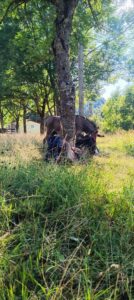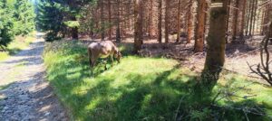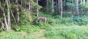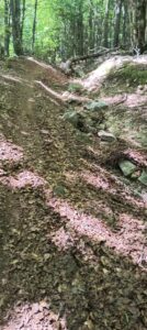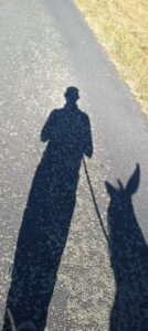 Wir hatten heute wieder schöne Wanderpassagen…..wir waren gerade im Wald unterwegs, als ich vor uns Reitpferde am Weg sah …ich band Nano fest und lief vor…es war ein Gruppe von Reitern…ich sagte, dass ich einen Esel habe und die passten auf ihre Pferde auf …ging alles gut ..