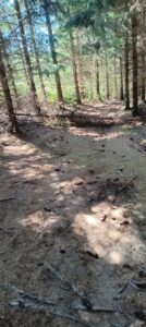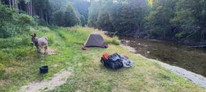 Später Nachmittag kamen wir am Ziel an…. blöd war, dass der Campingplatz außer Betrieb ist…es stehen noch paar Mobilheime da, aber die Zugänge sind gesperrt…. nicht komplett, so dass ich davon ausgehen muss, dass eine kleine seitliche Rasenfläche davon ausgenommen ist 😉…naja wir liefen erstmal noch eine Weile weiter Richtung morgiges Etappenziel….die ganze Strecke von 10km wäre für heute zuviel ..da wir aber nichts fanden, kehren wir um und gingen zum Campingplatz…wir machen ja auch nur Biwak…..und kein camping…