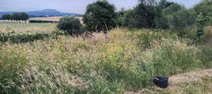 Als ich heute Morgen noch im Schlafsack lag, trafen die ersten Sonnenstrahlen schon das Zelt…es war dann nicht so bitter kalt… Frühstück gab es erstmal keines….ich wollte nochmal zurück in den Ort laufen… eigentlich mussten wir in die entgegengesetzte Richtung…aber die Entfernung zum heutigen Ziel war nicht soo groß, und so entschied ich einen kleinen Umweg zu machen um Karotten, etwas Obst und vielleicht Frühstück zu bekommen… leider hatten die beiden Standorte geschlossen…also dann erstmal so starten….es war heute wieder sehr heiß….auf offener Ebene eine Herausforderung…. zwischendurch knabberte ich ein paar Kekse um Energie zu tanken….und später folgte noch eine Verschnaufpause für uns beide…. heute wollte ich wieder auf dem Campingplatz in Sainte Eulalie übernachten…. Pustekuchen…. komplett belegt….es war ausgerechnet ein Fest am Wochenende…hmm…einkaufen wollte ich schon wenigstens…also rein in den kleinen Ort und zum Lebensmittel-Geschäft und dann schnellstens wieder raus aus dem überfüllten Dörfchen …ich fand kurz außerhalb des Ortes auf einer Wiese neben dem Fluß Loire ein Plätzchen…hier sind wir alleine…der für das Fest zusätzlich ausgewiesene Stellplatz für Campingmobile war für uns ungeeignet und der war auch schon ziemlich voll….Heute Abend habe ich als Nachtisch eine restliche Scheibe Brot in der Pfanne angeröstet….und gefriergetrocknete Himbeeren von zu Hause mit etwas Wasser zu Marmelade verrührt….mein Marmeladen-Brot sozusagen…klappte auch mit Milch-Brötchen aus dem Tüte….🙂