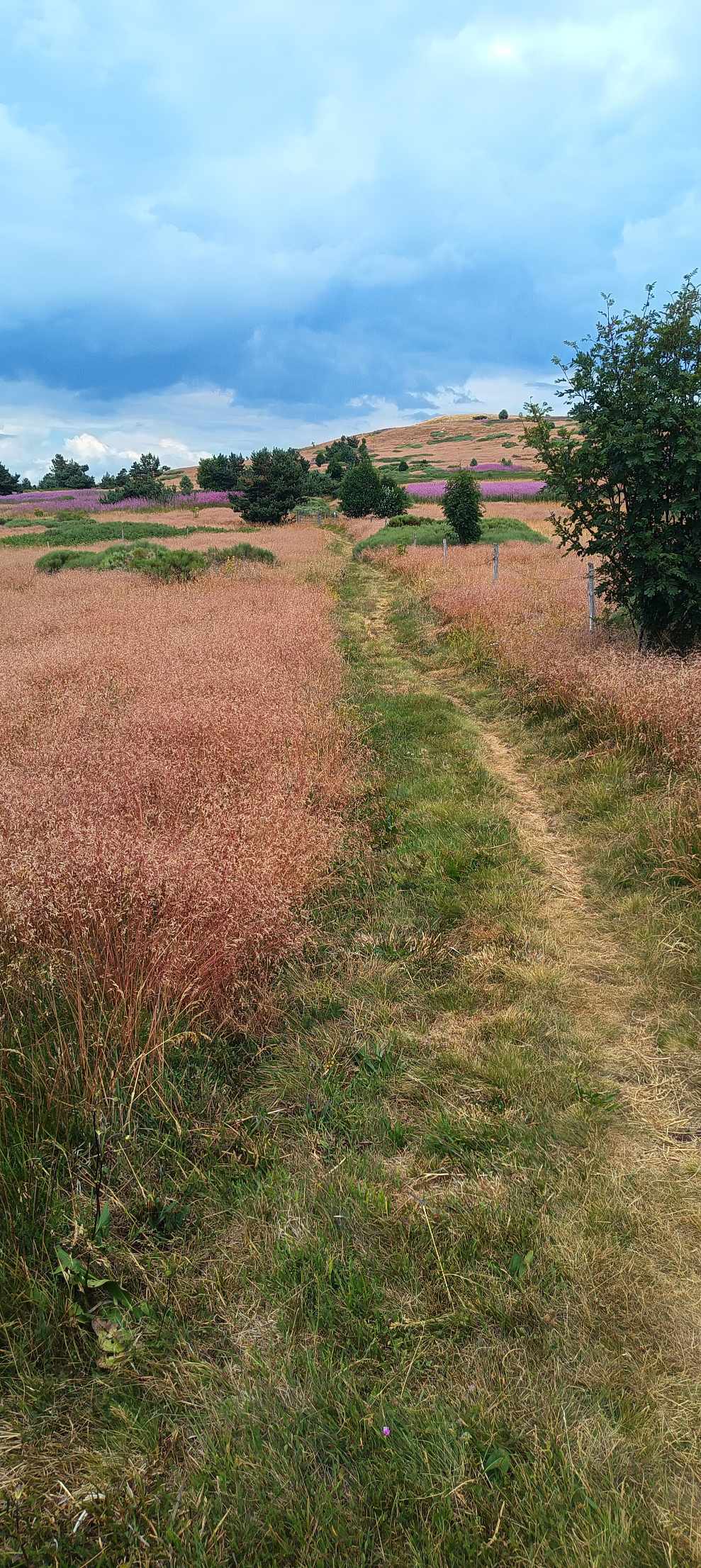 Meine Hoffnung war ja am heutigen Zielort, in Lachamp-Raphaël, dass das Hotel-Café mit dem Minilädchen geöffnet hat …war aber leider nicht so…meine Vorräte sind knapp, weil ich nicht mehr soviel gekauft hatte für die letzten Tage…so gab es heute Abend Kekse und Plätzchen…. Studentenfutter hätte ich ja auch noch …. ich hoffe, ich kann morgen Früh wieder in dem Café frühstücken 🙂. Man merkt, dass in Frankreich jetzt auch Ferien sind….es sind mehr Camper-Wagen unterwegs….so war auch der Caravan-Platz ordentlich belegt, was mich bewegt hat weiterzulaufen…auf der Rasenfläche am Friedhof wollte ich heute nicht mehr übernachten, so zogen wir auf eine Wiese nahe am Ort, wo mal keine Zäune den Zugang versperren…